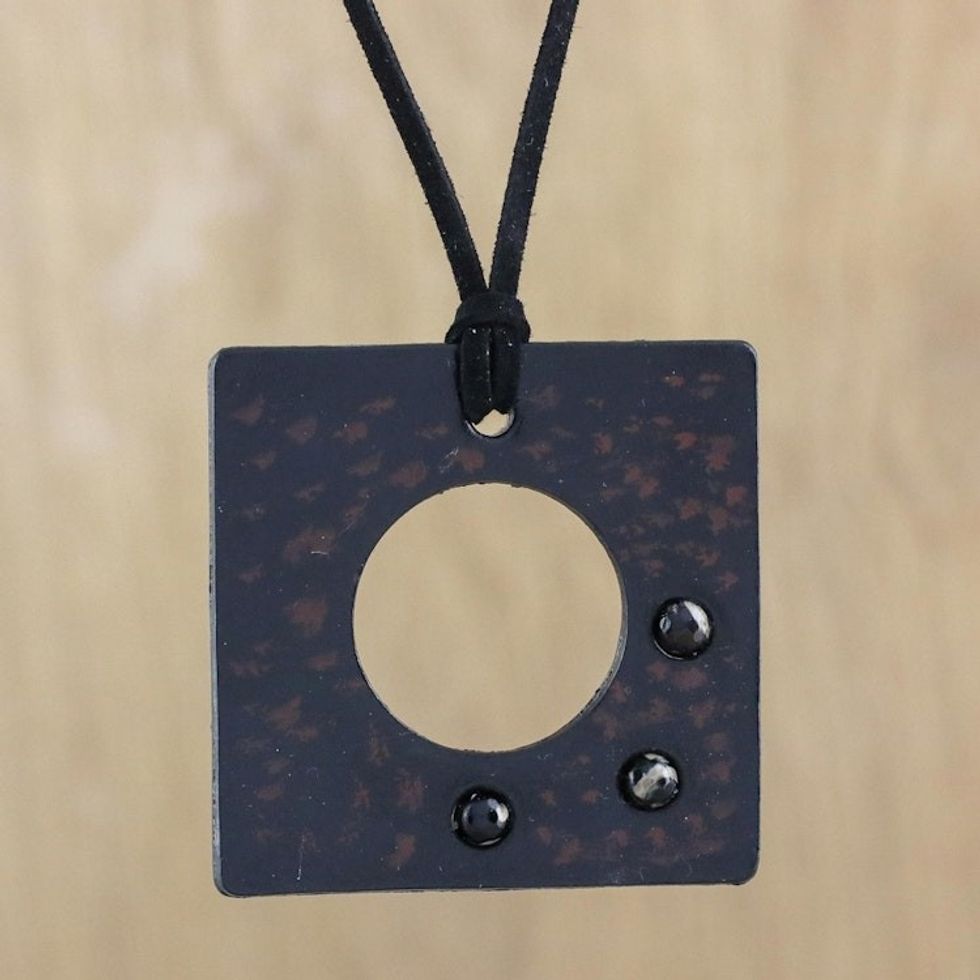 Agate and Leather Pendant Necklace in Brown from Thailand 'Lucky Square in Brown' Item ID: 2671801142