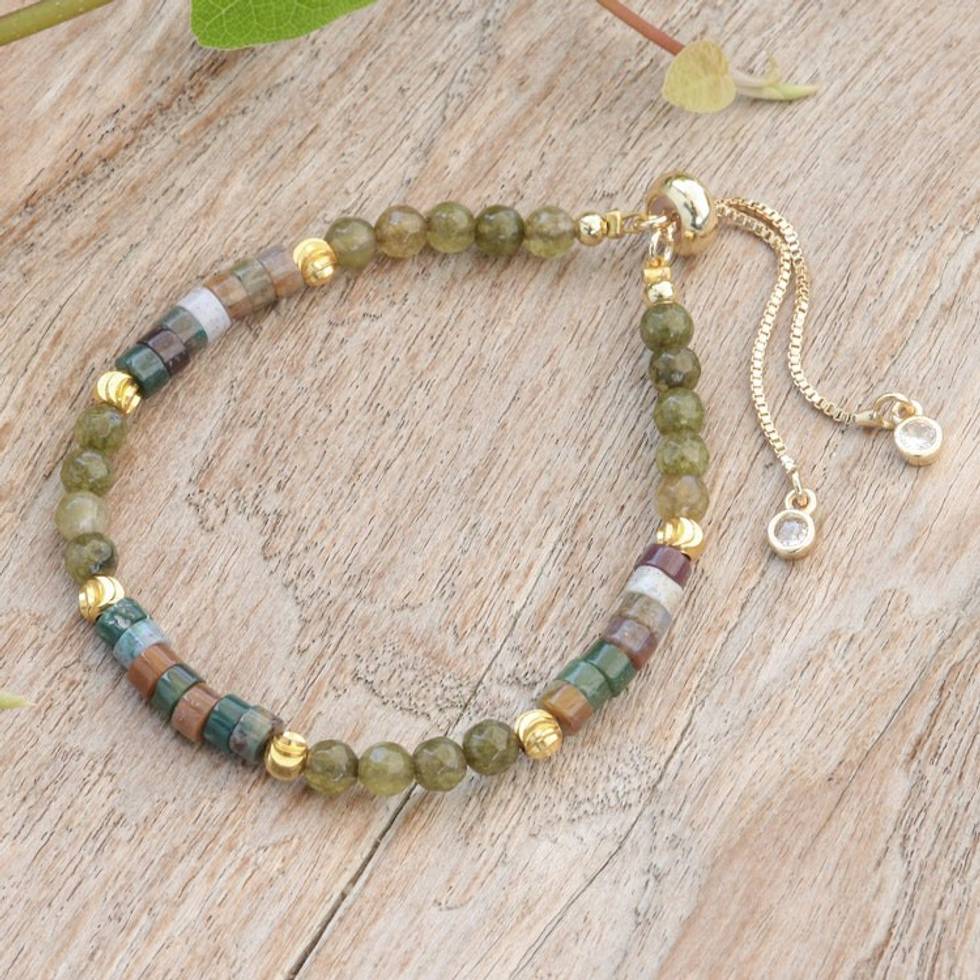 Agate and Quartz Beaded Adjustable Wristband Bracelet 'Vibrant Flair' Item ID: 2671796633