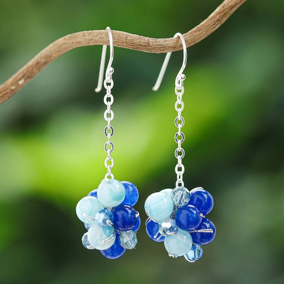 Agate and Quartz Cluster Dangle Earrings in a Blue Palette 'Ocean Feelings' Item ID: 2669927952