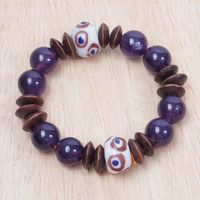 Agate and Recycled Glass Beaded Stretch Bracelet in Purple 'Purple Mind' Item ID: 2671805435