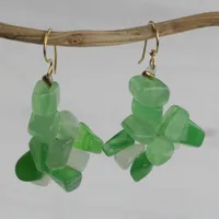 "Beautiful hues of green shine throughout these gorgeous cluster earrings hand crafted by Harriet Faako Adjei of Ghana. The earrings feature agate beads and brass hooks. The artist calls these Selorm, which means 'God loves me' in the Ewe language."