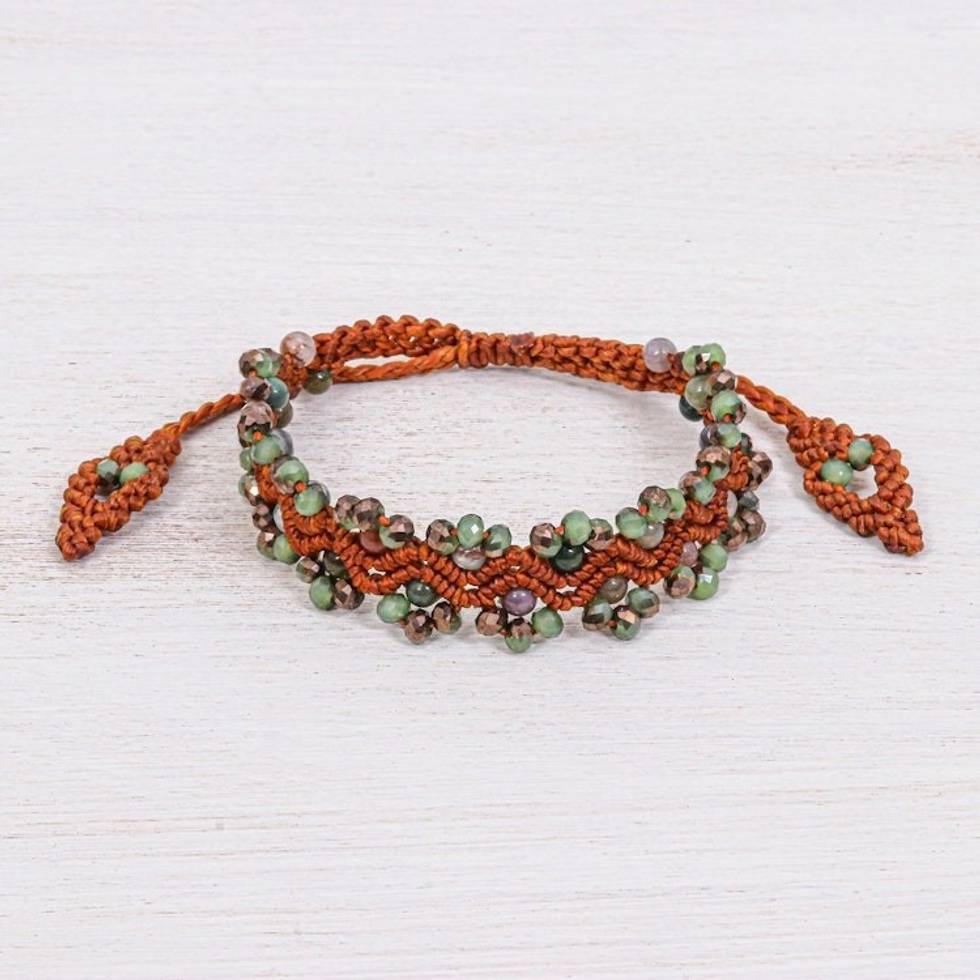 Agate Beaded Cord Bracelet with Sliding Knot 'Shiny Forest in Brown' Item ID: 2671800271