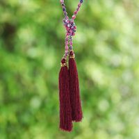 Agate Beaded Lariat Necklace in Dark Red from Thailand 'Festive Holiday in Dark Red' Item ID: 2671800842