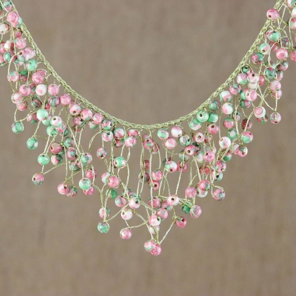 Agate Beaded Waterfall Necklace in Pink from Thailand 'Fantasy Rain in Pink' Item ID: 2669926070