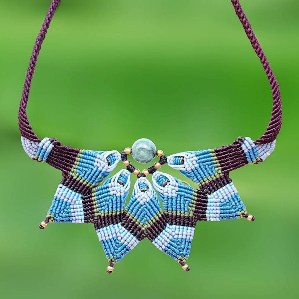 Agate Macrame Statement Necklace from Thailand 'Bohemian Star' Item ID: 2671800286