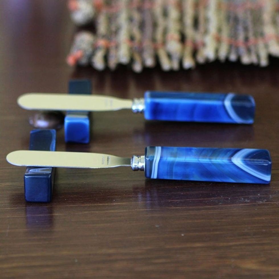 Agate Spreader Knives Handcrafted in Brazil Pair 'Sapphire Blue Deli' Item ID: 2669935299