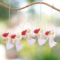 Albesia Wood Angel-Themed Holiday Ornaments Set of 5 'Love Delivery in Lilac' Item ID: 2671747012