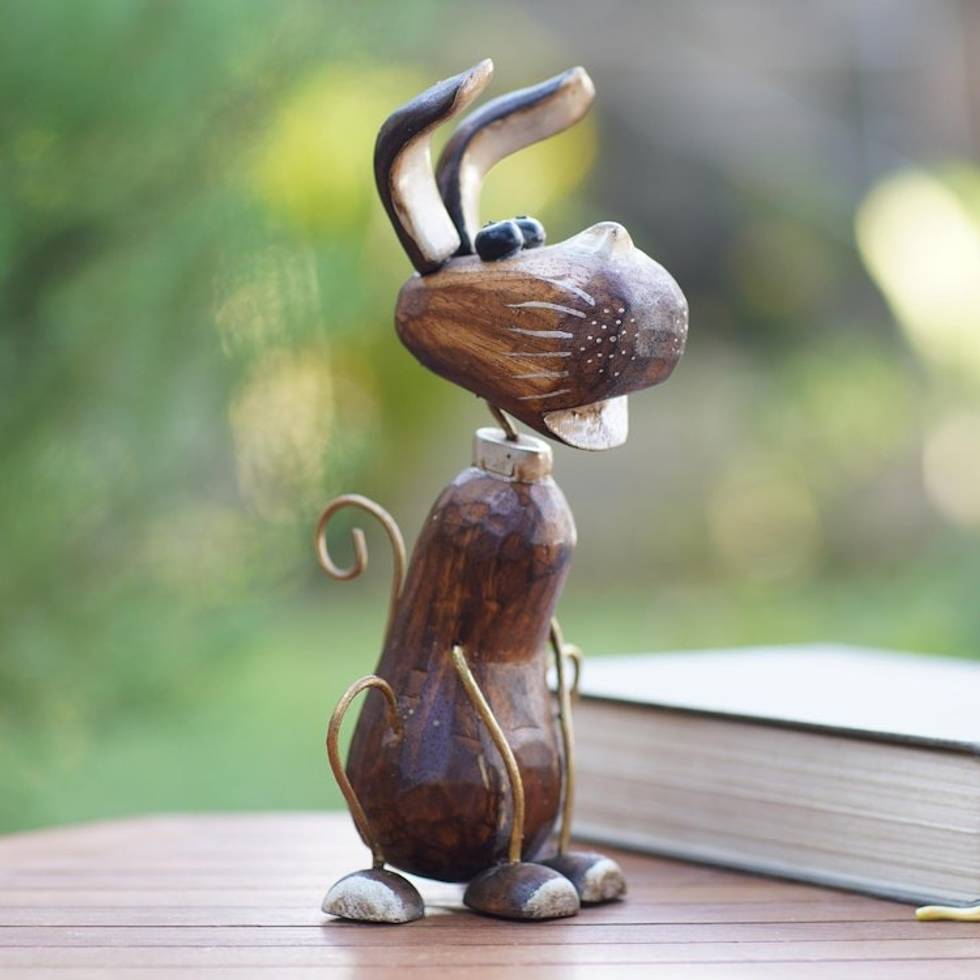 Albesia Wood Dog-Motif Statuette from Bali 'My Best Friend' Item ID: 2671747404