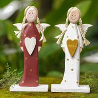 Albesia Wood Holiday Angel Decor Pair 'Red Messenger' Item ID: 2671821010