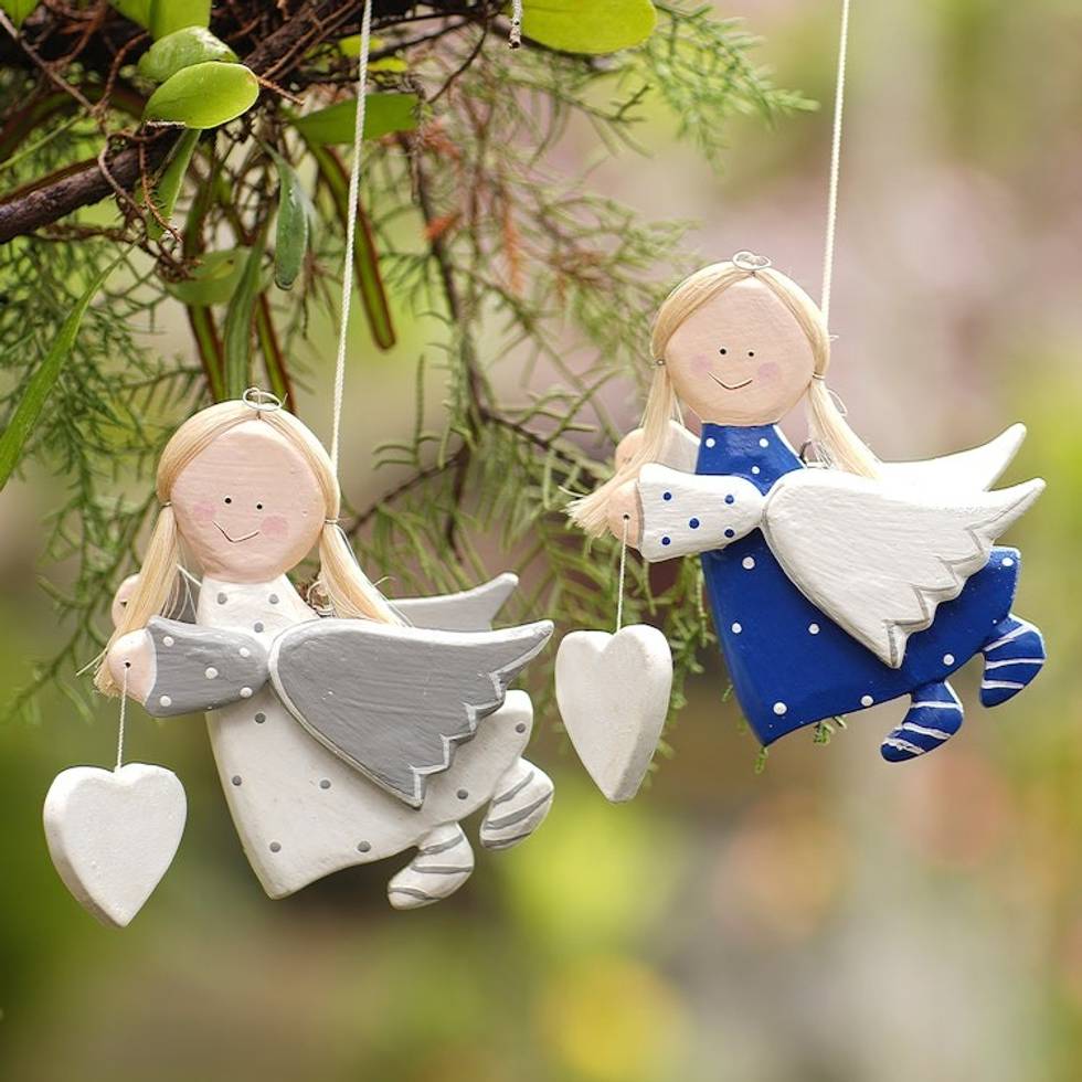 Albesia Wood Holiday Angel Ornaments Pair 'Joyous Angels' Item ID: 2669891826