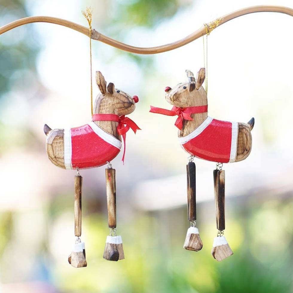 Albesia Wood Holiday Reindeer Ornaments Pair 'Rudolf' Item ID: 2671821657