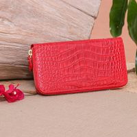 Alligator Print Cherry Leather Wristlet Wallet with Strap 'Cherry Safari' Item ID: 2671798182