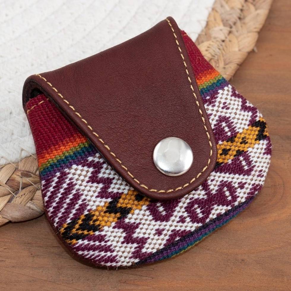 Alpaca Blend and Leather Coin Purse 'Cusco Colors' Item ID: 2671820316
