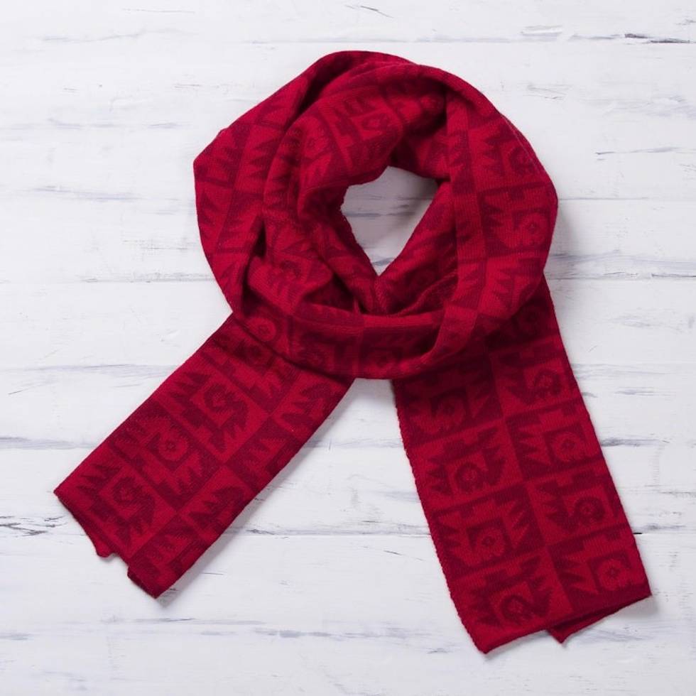Alpaca Blend Crimson and Cinnabar Scarf 'Red Paracas Shadows' Item ID: 2671820459