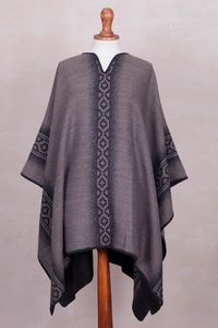 Alpaca Blend Reversible Black and Taupe Poncho 'Chakanas in Grey and Taupe' Item ID: 2671695821