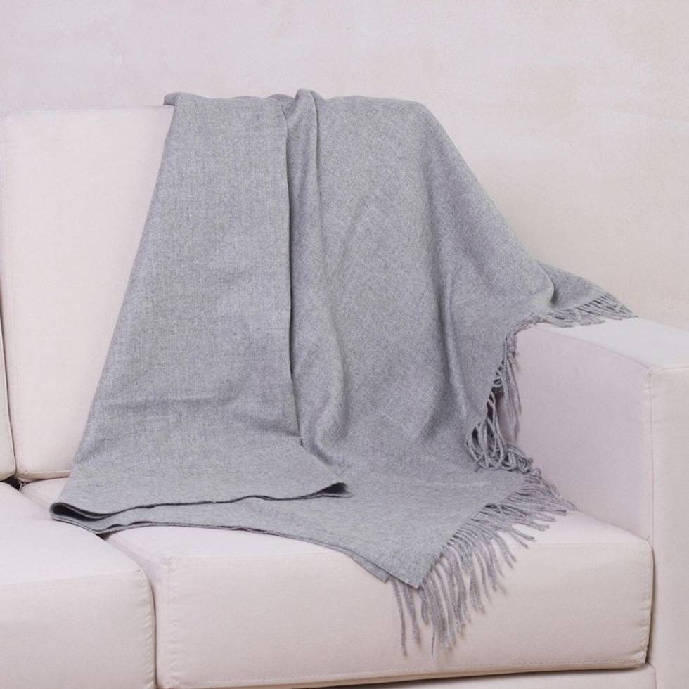 Alpaca Wool Solid Grey Throw Blanket 'Cozy Light Gray' Item ID: 2671819252