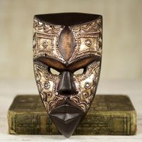 Aluminum and Wood African Mask Textured from Ghana 'Mbara Hunter' Item ID: 2671768761