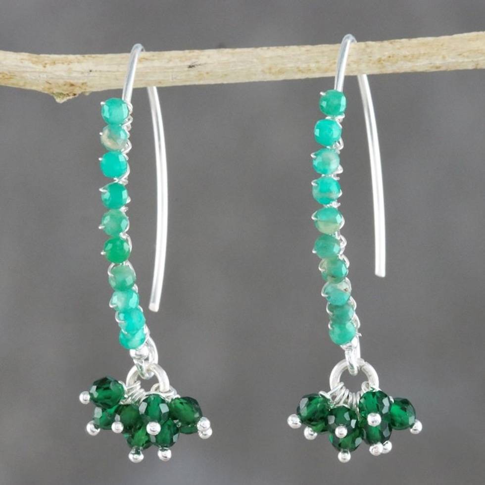 Amazonite Beaded Cluster Earrings from Thailand 'Dancing Gleam' Item ID: 2671799150