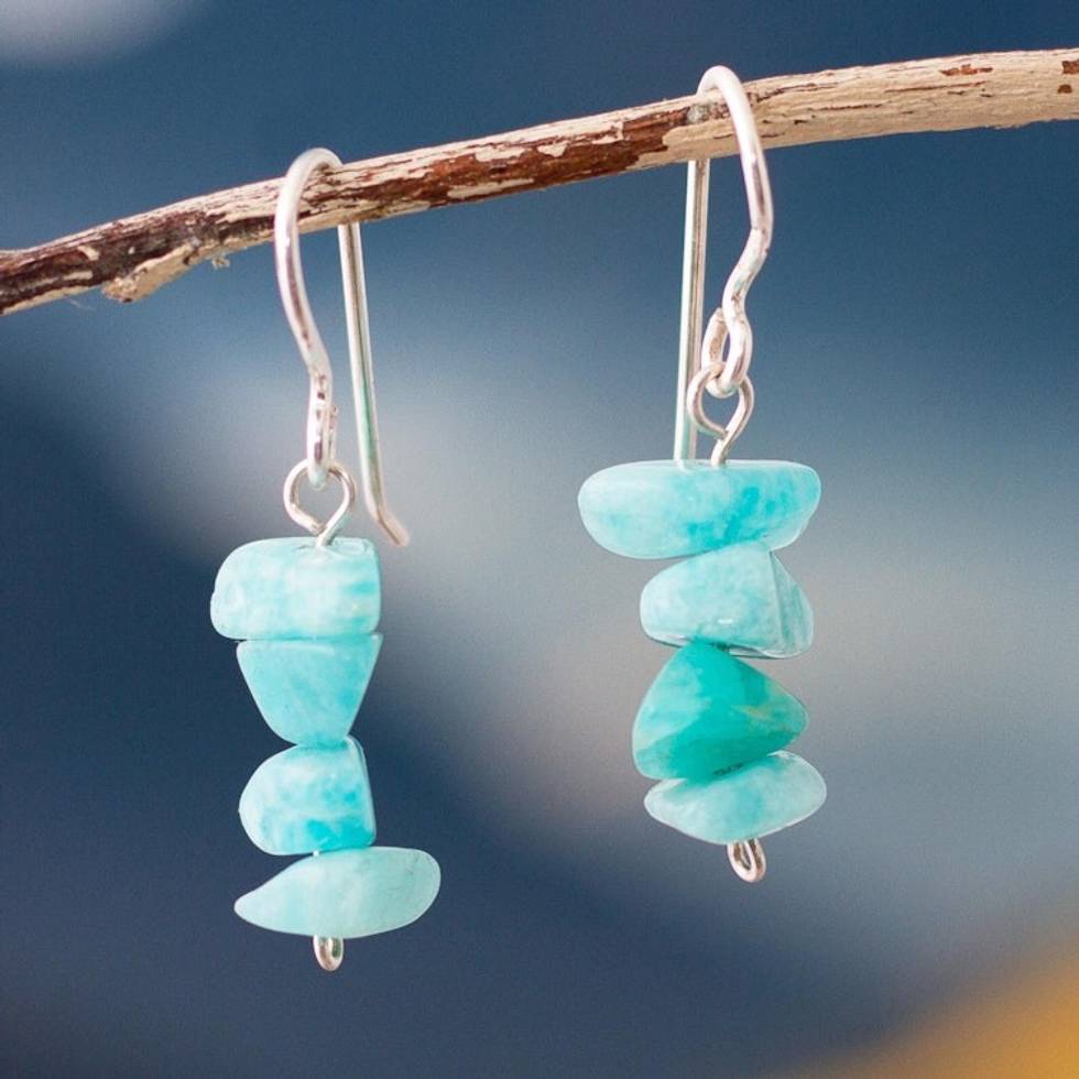 Amazonite Beaded Dangle Earrings Crafted in Peru 'Aqua Harmony' Item ID: 2671820451