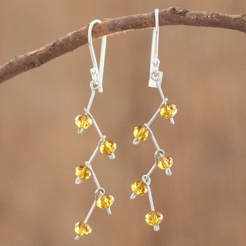 Amber Colored Crystal Bead Earrings With Sterling Silver 'Amber Sparkle' Item ID: 2671771738