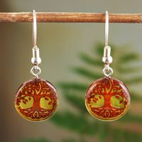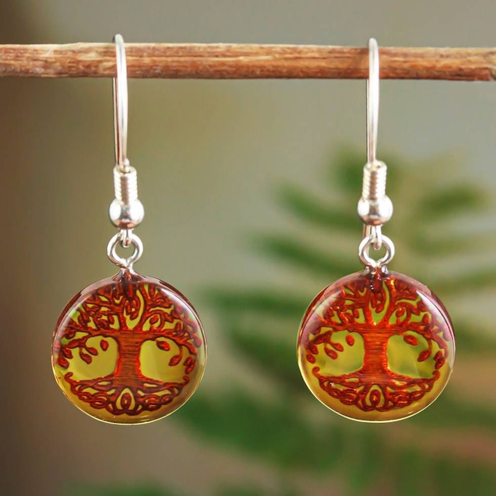 Amber Disk Earrings with Tree Motif on Sterling Silver Hooks 'Anahuac Trees' Item ID: 2671808393