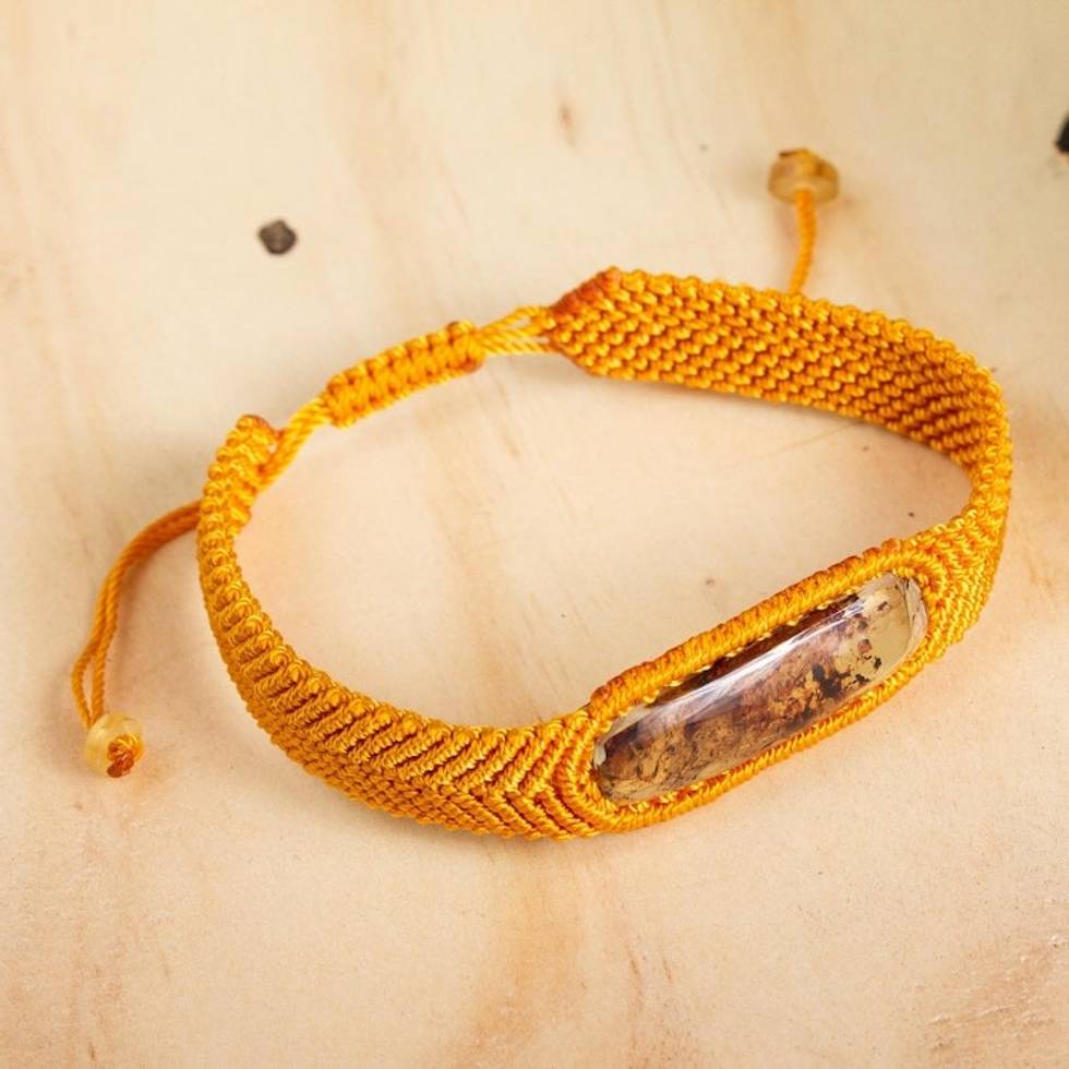 Amber Wristband Bracelet with Saffron Cord from Mexico 'Age-Old Elegance in Saffron' Item ID: 2669932403