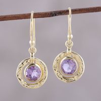 Amethyst and 18k Gold Plated Sterling Silver Dangle Earrings 'Glittering Lilac' Item ID: 2669924068