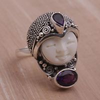 Amethyst and 925 Silver Face Shaped Ring from Bali 'Moonlight Prince' Item ID: 2669921025