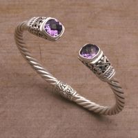 Amethyst and 925 Silver Rope Design Cuff Bracelet from Bali 'Altar Swirl' Item ID: 2669887203