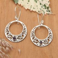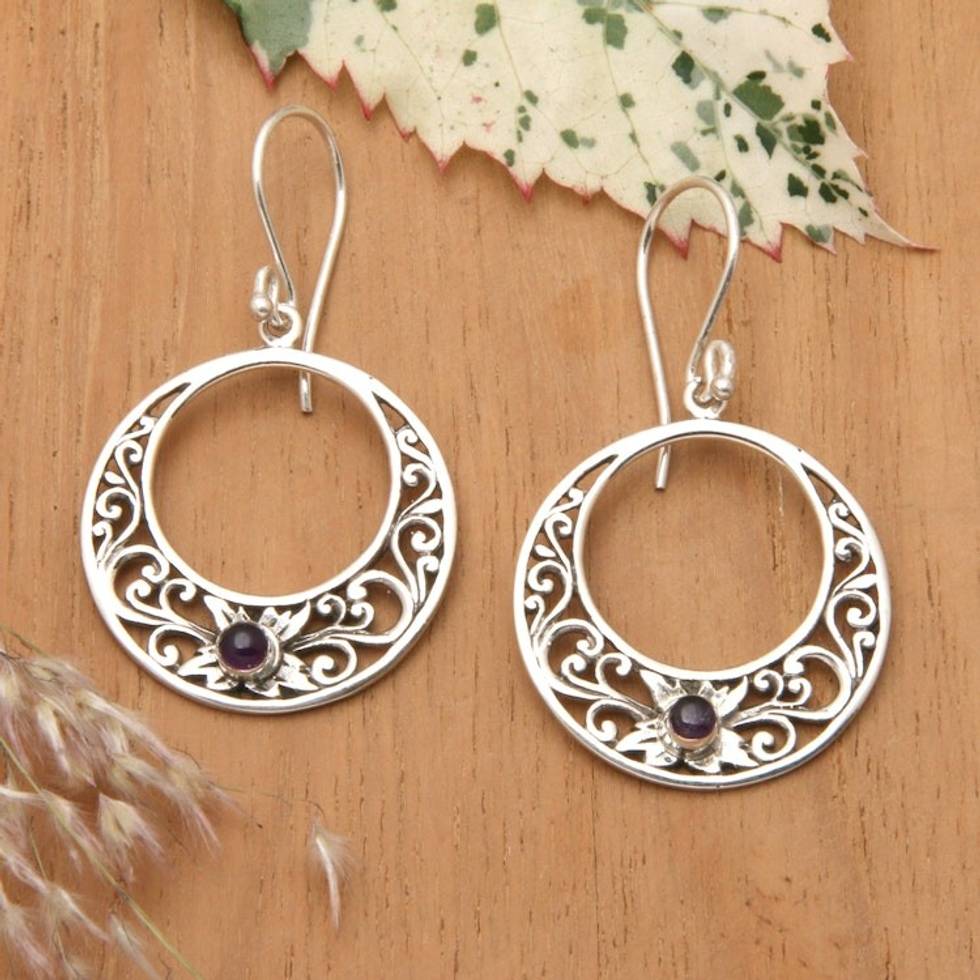 Amethyst and 925 Sterling Silver Dangle Earrings from Bali 'Crescent Spirals' Item ID: 2671734225