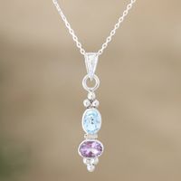 Amethyst and Blue Topaz Pendant Necklace in Sterling Silver 'Pastel Stones' Item ID: 2671787889