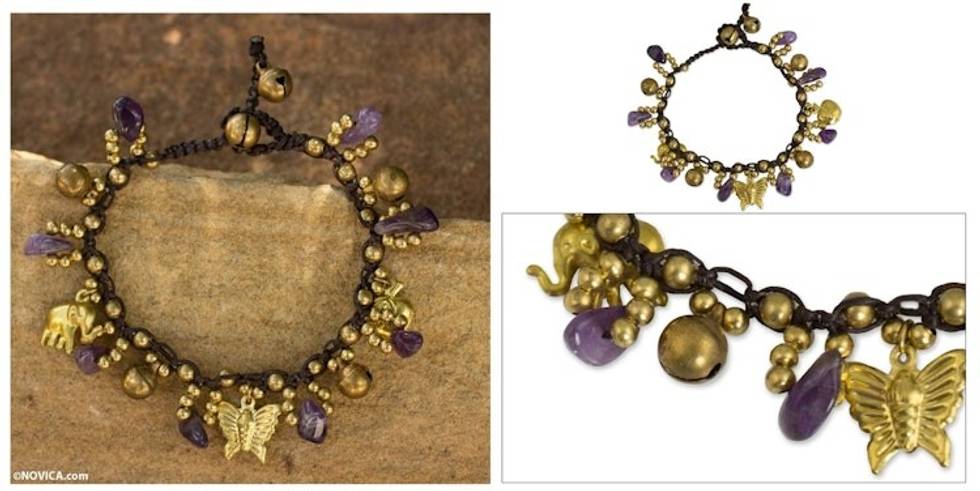 Amethyst and Brass Beaded Charm Bracelet 'Lavender Siam' Item ID: 2671803027