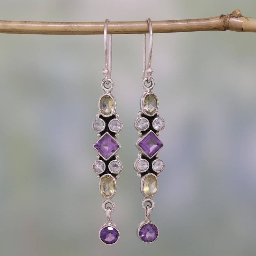 Amethyst and Citrine Earrings Artisan Crafted in India 'Duchess' Item ID: 2671794597