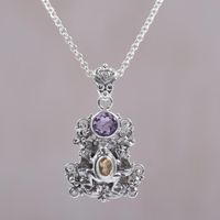 Amethyst and Citrine Frog Pendant Necklace from Bali 'Rainforest Frog' Item ID: 2671702236