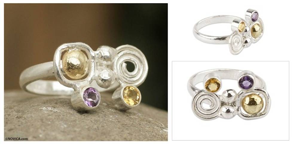 Amethyst and Citrine Silverl Ring with 18k Gold from Peru 'Intriguing Illusion' Item ID: 2670122468