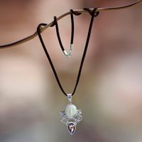 Amethyst and Cow Bone Pendant Necklace 'Guardian Moon' Item ID: 2671700391