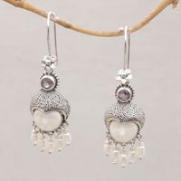Amethyst and Cultured Pearl Dangle Earrings from Bali 'Sunshine Princes' Item ID: 2669920862