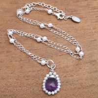 Amethyst and Cultured Pearl Pendant Necklace from Bali 'Wreathed Beauty' Item ID: 2671745000