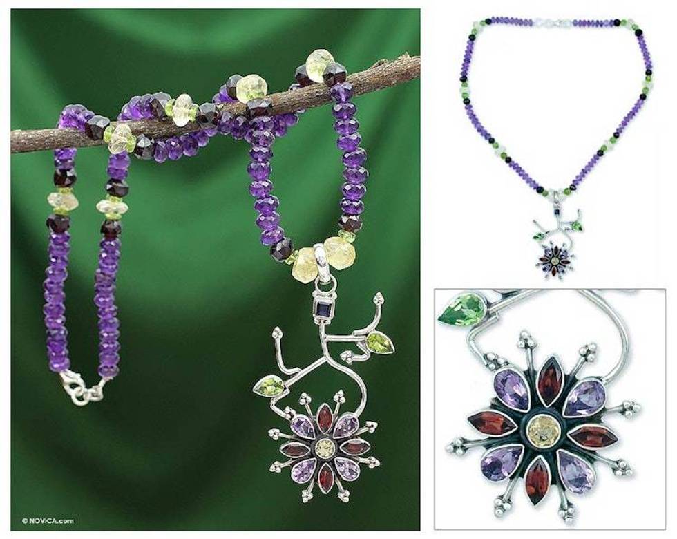 Amethyst and garnet pendant necklace 'Festival' Item ID: 2676664568
