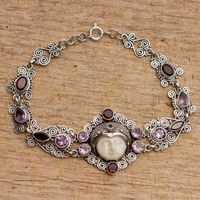 Amethyst and Garnet Sterling Silver Link Bracelet from Bali 'Sleeping Princess' Item ID: 2669921832