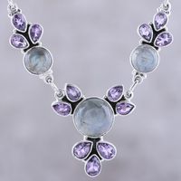 Amethyst and Labradorite Pendant Necklace from India 'Aurora Blossom' Item ID: 2671618708