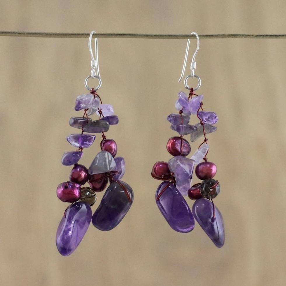 Amethyst and Pearl Dangle Earrings 'Diva' Item ID: 2669925807