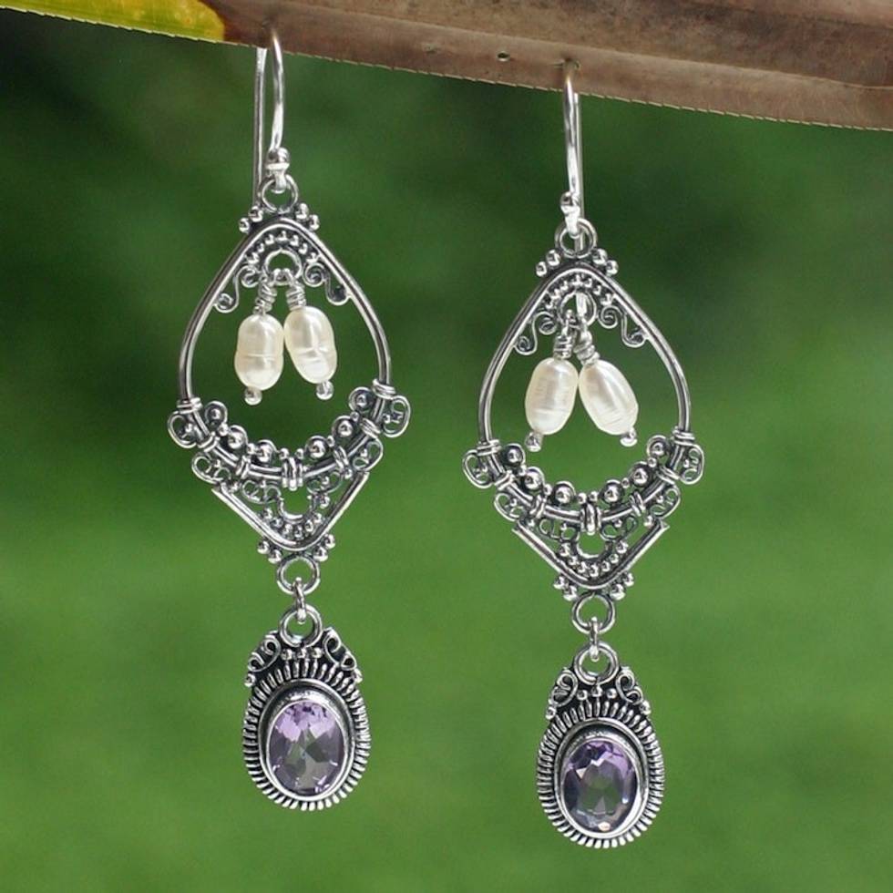 My wife says that there are not enough words in the English language to describe the "Thing of Beauty" which is the Temple Garden bracelet by Buana. To say it is exquisite seems inadequate - as one looks closely one sees tiny works of art embedded in the sliver design. The amethysts and pearls just add to the beauty of this bracelet.Buana must be considered not just a treasure of Bali but someone who is revered wherever his jewelry is found and lovingly and proudly worn.