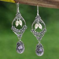 Amethyst and pearl flower earrings 'Empress' Item ID: 2671699410