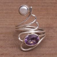 Beautifull ring! Very nicely crafted. I like the combination of pearl and amatist and because it is a wrap ring I can adjust a litle to fit very comfortably.