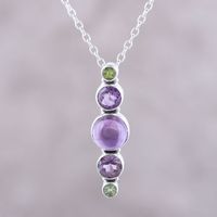 Amethyst and Peridot Pendant Necklace Crafted in India 'Glittering Union' Item ID: 2671616772
