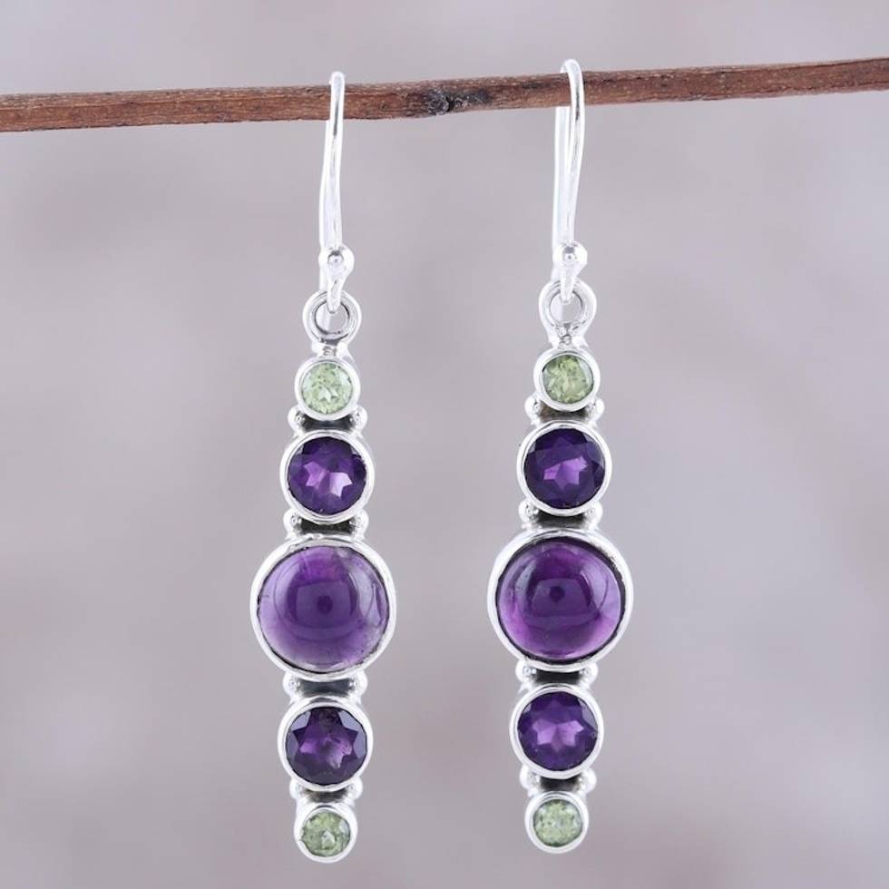 Amethyst and Peridot Sterling Silver Dangle Earrings 'Peaceful Fusion' Item ID: 2671792274