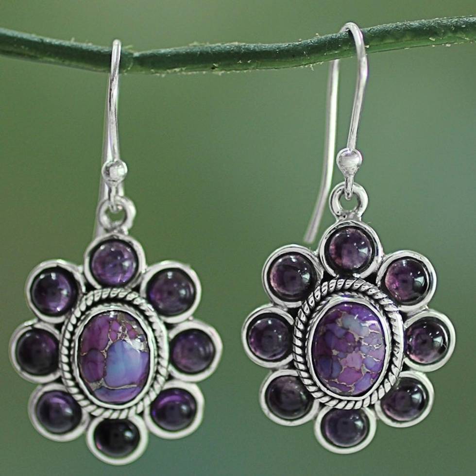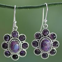 Amethyst and Purple Composite Turquoise Dangle Earrings 'Purple Blossoms' Item ID: 2671793461