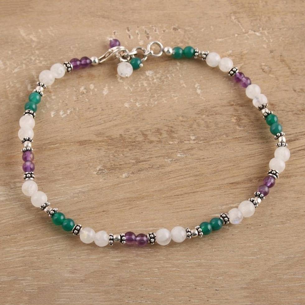 Amethyst and Rainbow Moonstone Anklet 'Head Over Heels' Item ID: 2669924017