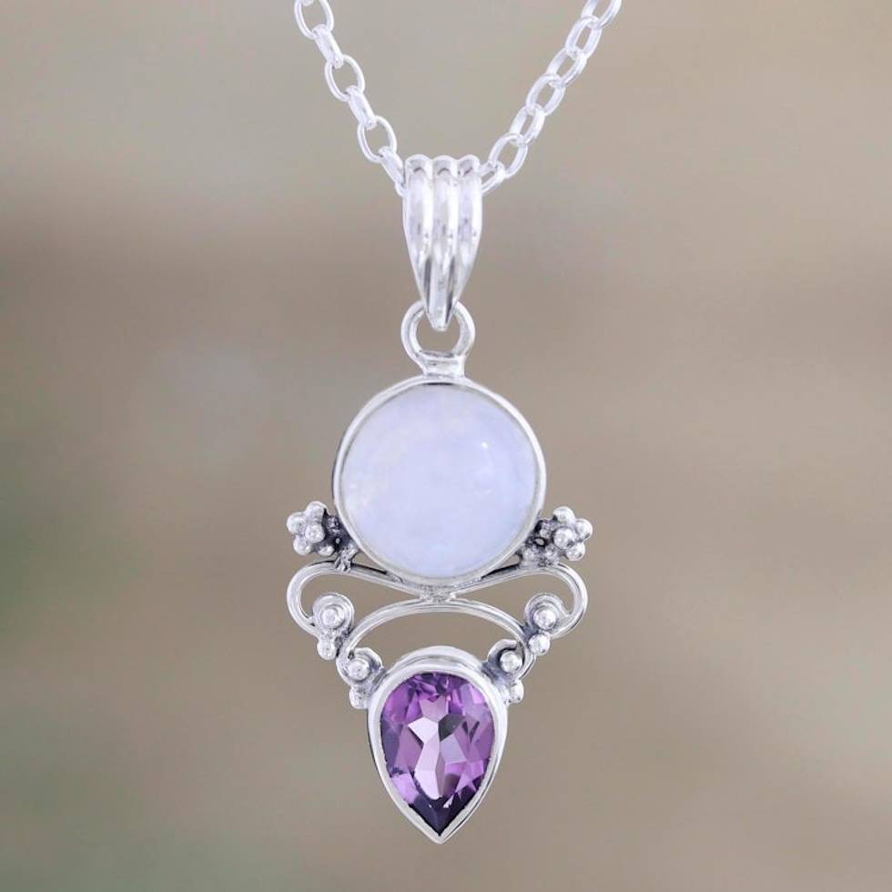 Amethyst and Rainbow Moonstone Pendant Necklace 'Mystic Tide' Item ID: 2669924751